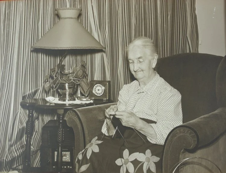 This photo, taken by her son-in-law on the occasion of her 90th birthday in 1951, was intended to capture Guentner’s maternal spirit. Her granddaughter, Anita Froegel, described her as “lovely lady who loved knitting socks, mittens, and hats for all of us. She talked with a mixture of German words and was very charming to everyone.” Whatever hardships Guentner faced in her life – and as an immigrant in a strange land, she must have faced a few – Guentner was a steadfast presence for her family until her death in 1955 at age 94.
