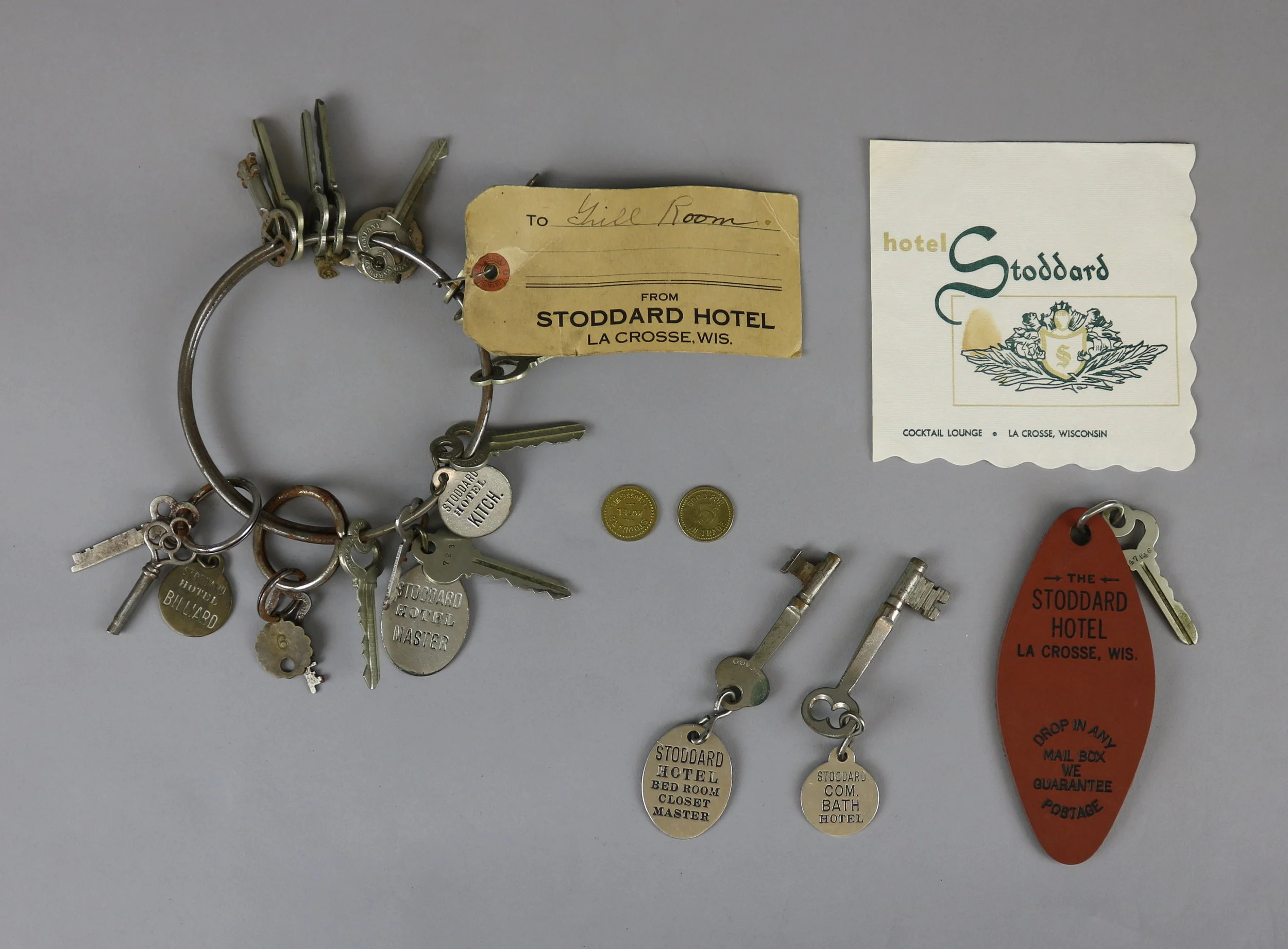 Marian Elliott was managing and operating hotels during a time when it was unheard of for women to do so. Even though they had sold the hotel, she saved these keys and other memorabilia from their time at the Stoddard Hotel.
